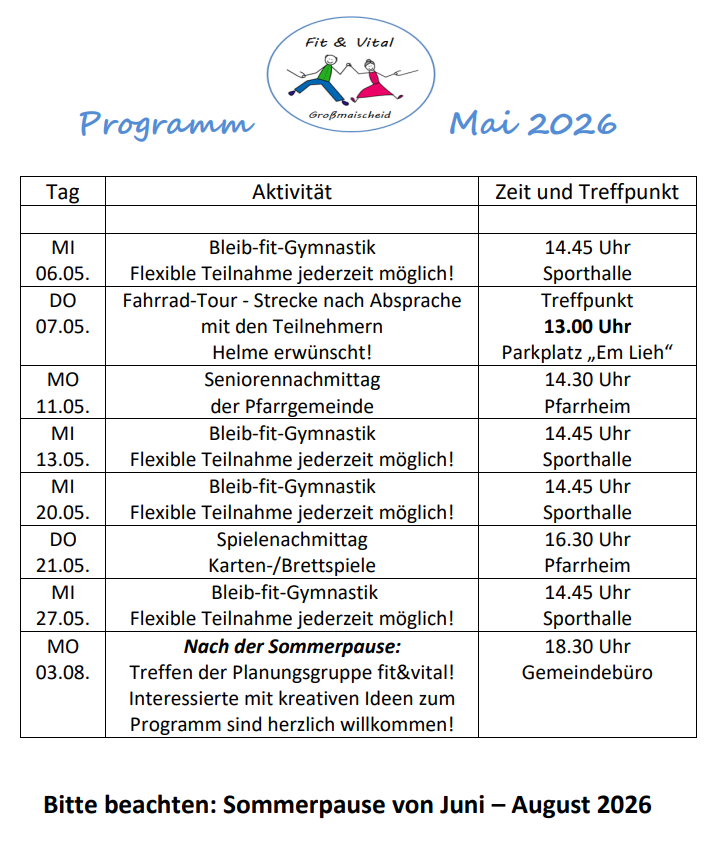 Fit & Vital Programm für Mai